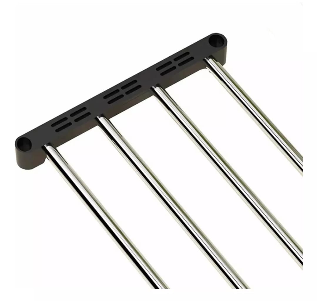 Fabricado en acero galvanizado y plástico reforzado, soporta hasta 6 kg por nivel.
